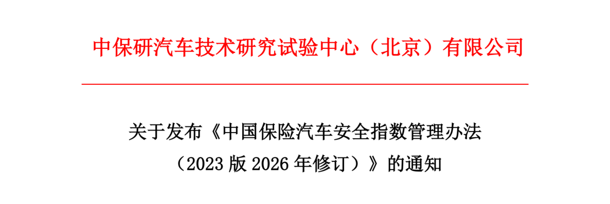 关于发布《中国保险汽车安全指数管理办法 (2023版2026年修订)》的通知